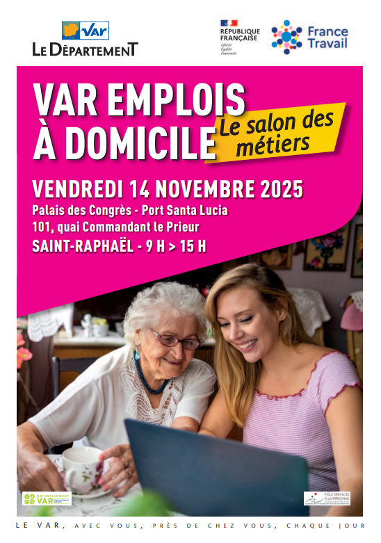 Afin de communiquer sur les métiers des Services Autonomie à Domicile, de contribuer à les rendre attractifs, d’informer sur les formations dédiées mais aussi de favoriser le contact avec les recruteurs, le Conseil départemental du Var et France Travail organisent le salon Var emplois à domicile.